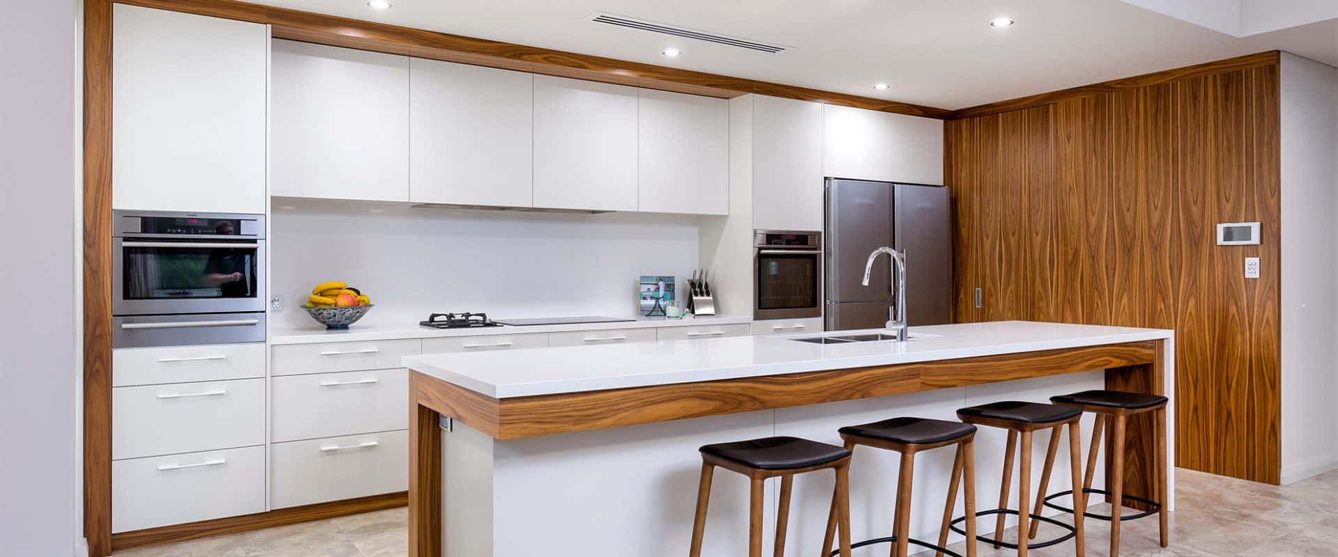 The quality of this home is evident at every turn – American Black Walnut is used extensively; 35-course ceilings are recessed and trough-lit; 2.4m high doorways create height and volume; and the stunning feature tiling in the bathrooms adds to the overall sense of style and sophistication.
